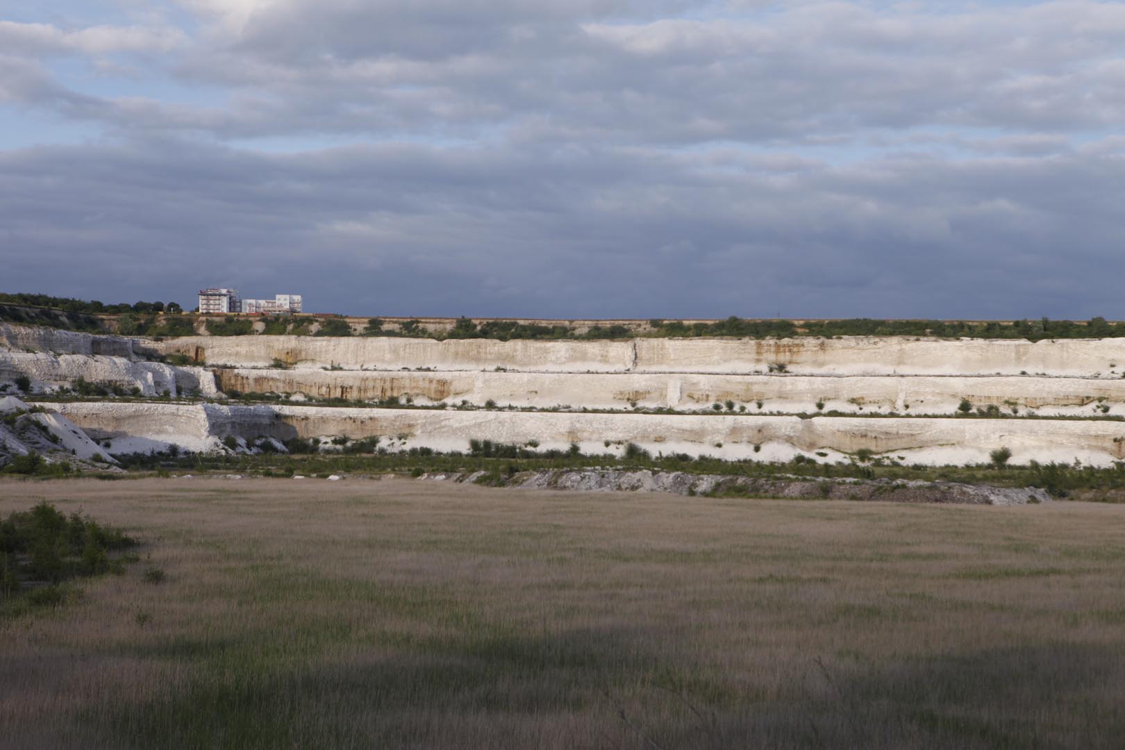 This story substitutes the lush Ligurian hills above the Mediterranean sea of Calvino’s tale for the cold, windswept plains of southern Skåne. The speculative territory of the Öresund region, between the swelling consumer city of Emporia and the transnational infrastructural apparatus of the Öresund bridge.[4] A modest peripheral landscape of suburban villas, allotment gardens and cultivated fields suddenly interrupted by the monumental sunken hollow of an abandoned limestone quarry. The earthly consequence of the production of real estate. This ghostly void is an archive of the Swedish construction industry recorded in the earth—every boom and bust registered in its striated layers of rock, its scattered contents preserved in countless buildings throughout Sweden. The last load of limestone destined to become cement was removed from the site in 1994 ending well over a century of continuous industrial quarrying, but this was by no means an end to production; focus merely shifted from the material production of real estate to the more speculative variety.