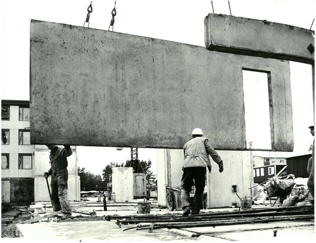 On the precipice of the Million Homes Program, Allan Skarne, alongside other members of D4 Gruppen, could effectively demonstrate the merits of concrete as a rational, cost-effective, and robust building material. A material particularly well-suited to industrial production processes and the demands required of such a large, and unprecedented housing policy. Acquiring essential knowledge on rationalized production processes and effective organizational structures from the likes of the carmakers Volvo, the shipbuilders Kockum, and the electrical manufacturers ASEA, Ohlsson & Skarne developed what promised to be the most rational concrete panel system yet, System S66. The building system for multi-story residential construction was to accommodate the entire building process—from land acquisition and planning through to the finished residential neighborhood—as well as covering building operation, management, maintenance, and eventual renovation requirements.[23] System S66 had ambitions to become, in essence, the standard Volvo model of the construction industry—a building system that could easily be implemented on a large scale throughout Sweden, and even beyond. In 1967, Skarne sold Ohlsson & Skarne to Skånska Cementgjuteriet (today known as Skanska), transferring the company’s rich knowledge and experience in prefabricated concrete panel construction to the dominant construction firm in the Nordic region. While Ohlsson & Skarne were certainly trailblazers, the other major construction firms soon followed, and knowhow about prefabricated concrete construction rapidly spread throughout the industry and is still the prevailing technology in contemporary housing construction.
